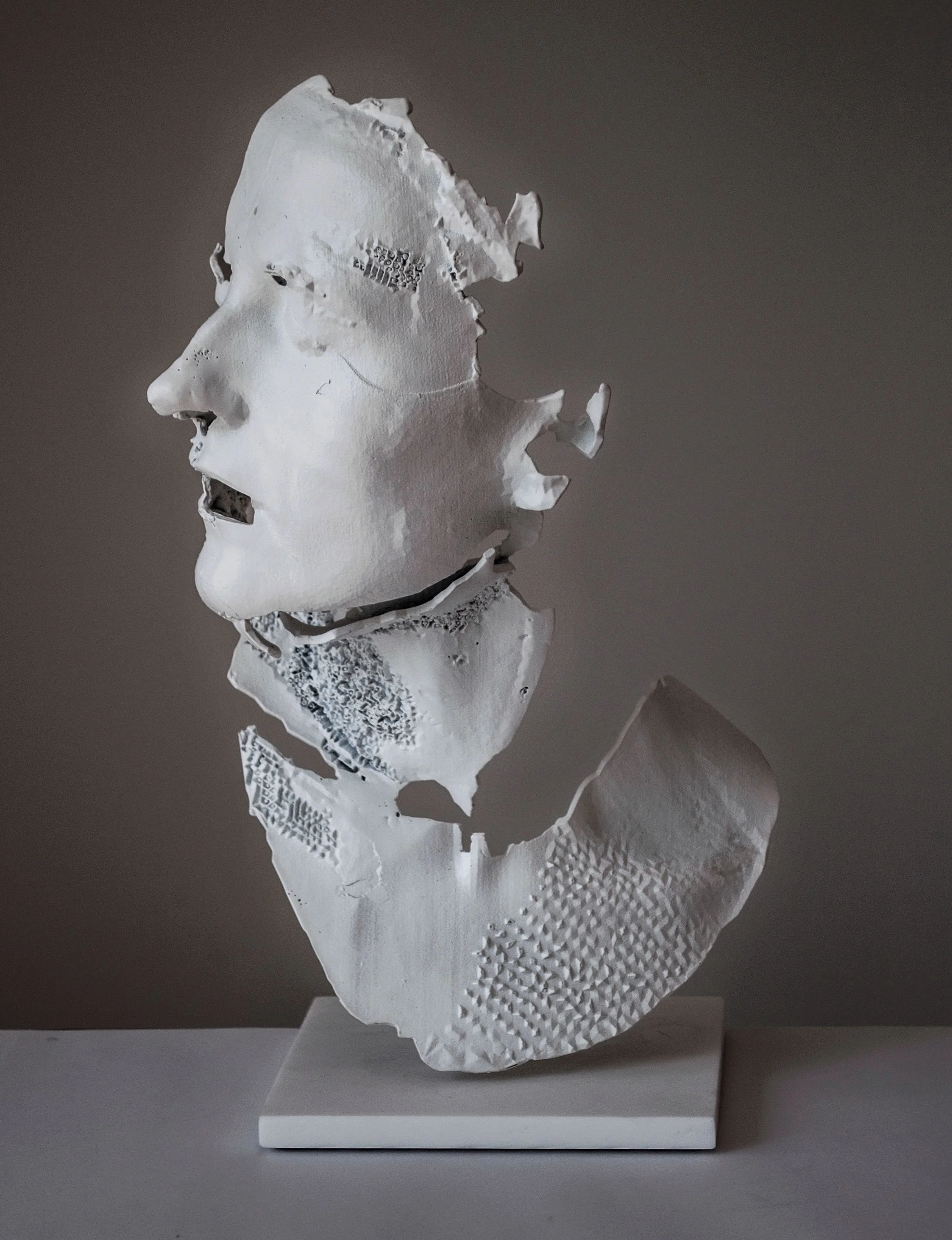 Portrait of J, 2017, 3D print from 3D laser scan with gesso and acrylic paint, Life size
