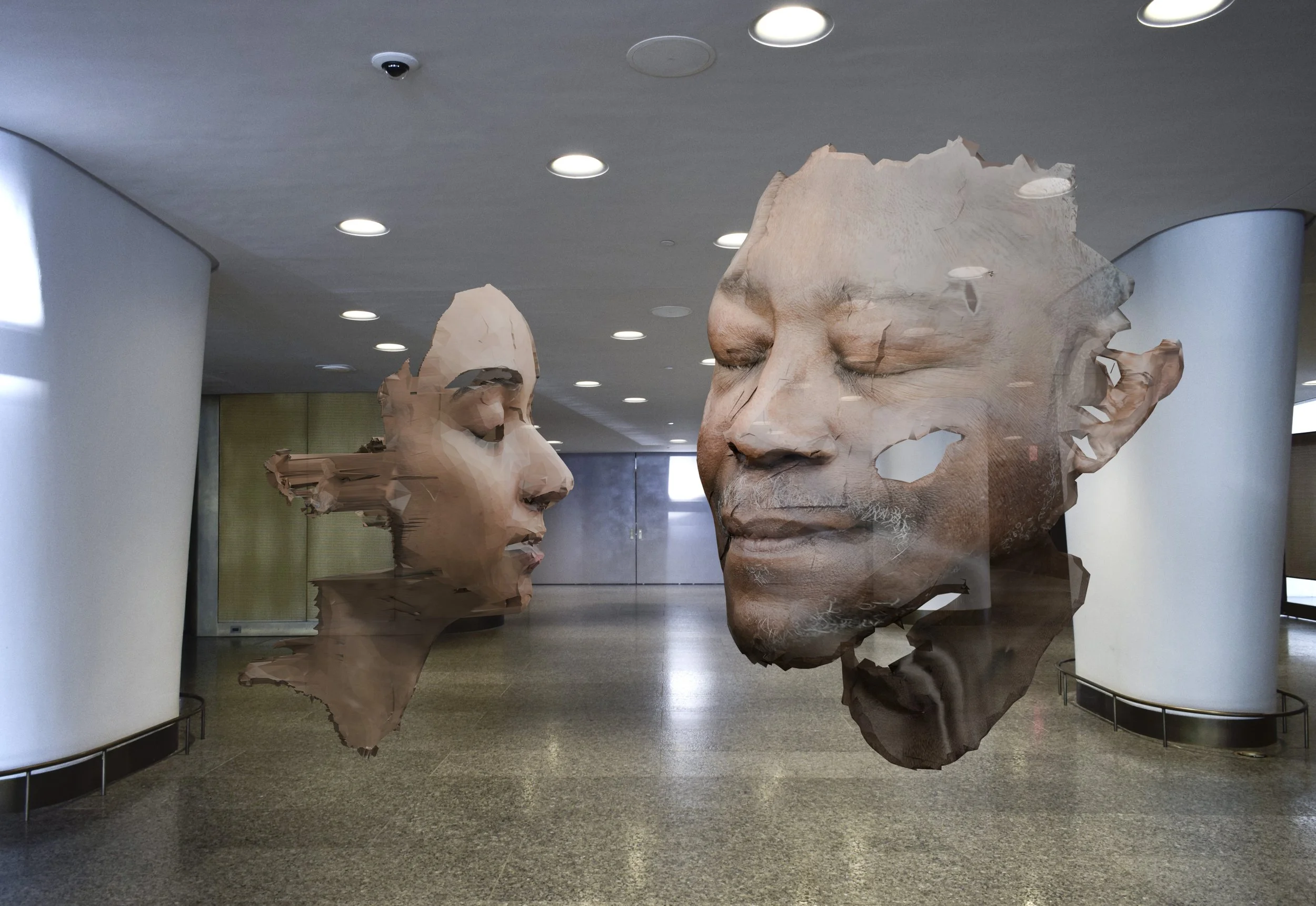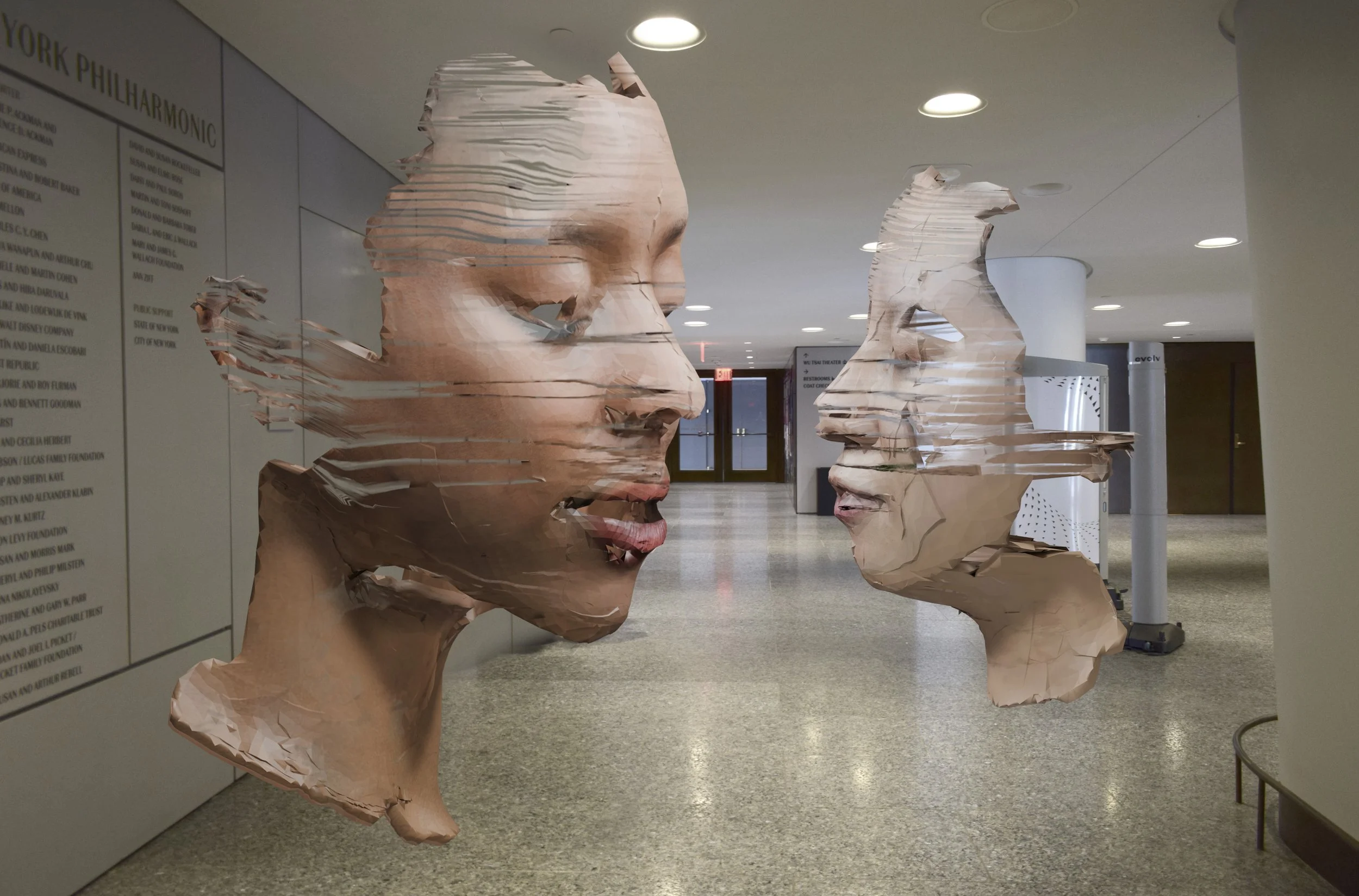Ghost Variations is a collaboration between Alexis Zerafa, creative technologist, and Sophie Kahn, digital artist and sculptor. Visualizing mental health and sound through a Snapchat augmented reality Lens and presented as part of the Festival Orchestra of Lincoln Center's season, the installation examines the relationship between the arts and our mental wellbeing. The primary subject of Ghost Variations is 19th century composer Robert Schumann, who, in the final years of his life at a psychiatric asylum, relied on the music of J.S. Bach as he navigated his deteriorating mental health. The busts of Schumann, Bach, and a range of contemporary models, are rendered via larger-than-life augmented reality sculptures. Kahn played Schumann's music under water, recorded the waveforms, and mapped them onto the monumental heads as a visual embodiment of the way that we listen to music. On Snapchat, guests can ‘look through the eyes’ of these figures, whose textures are further animated by ambient sound in the space.